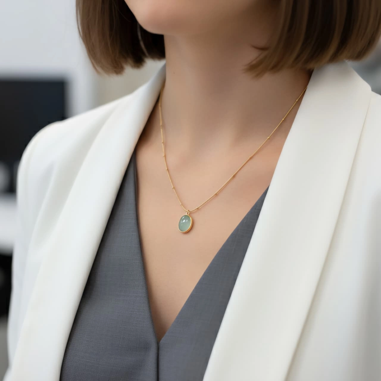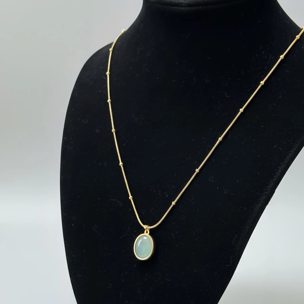 Discover timeless elegance with our Aqua Green Necklace. Featuring an 18k gold plated finish, this piece is crafted to be skin safe, hypoallergenic, waterproof, and anti-tarnish, ensuring lasting beauty and comfort.