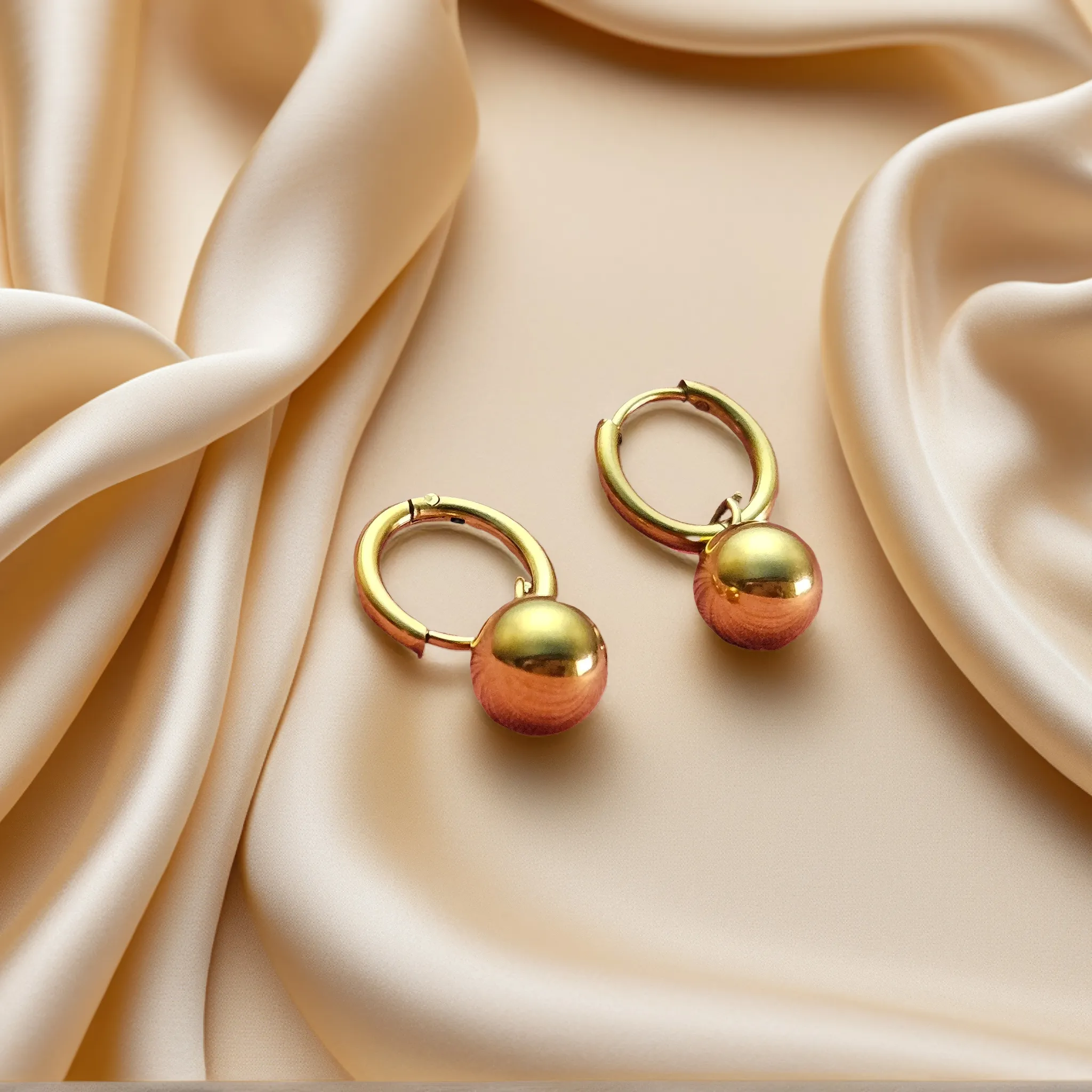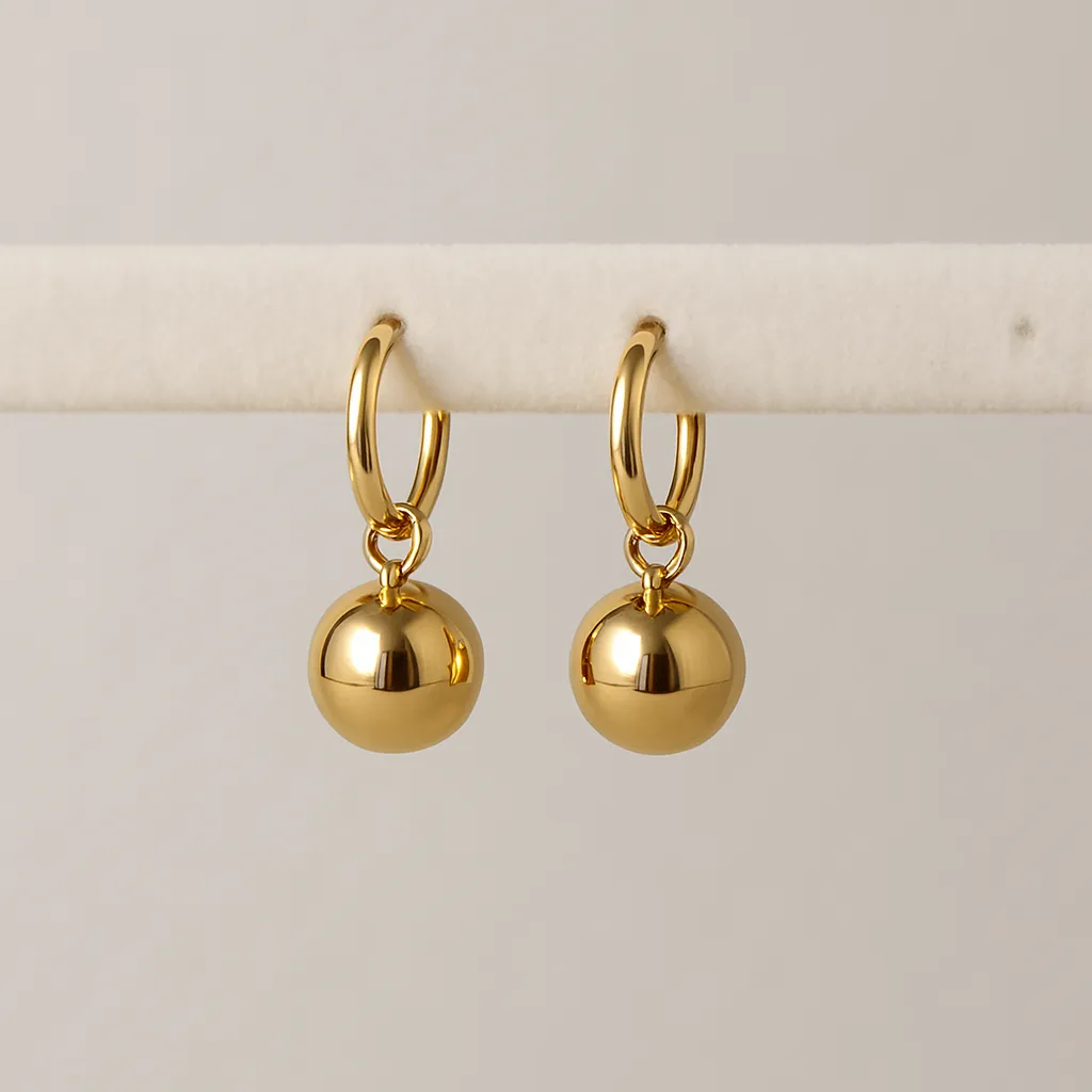 A golden loop with a bold, gleaming soul—these minimal yet striking hoops add effortless elegance to any outfit. Crafted in 18k gold-plated stainless steel, hypoallergenic, waterproof, and anti-tarnish, Belloop features a polished ball pendant that catches the light with every turn, creating a modern classic for everyday wear.