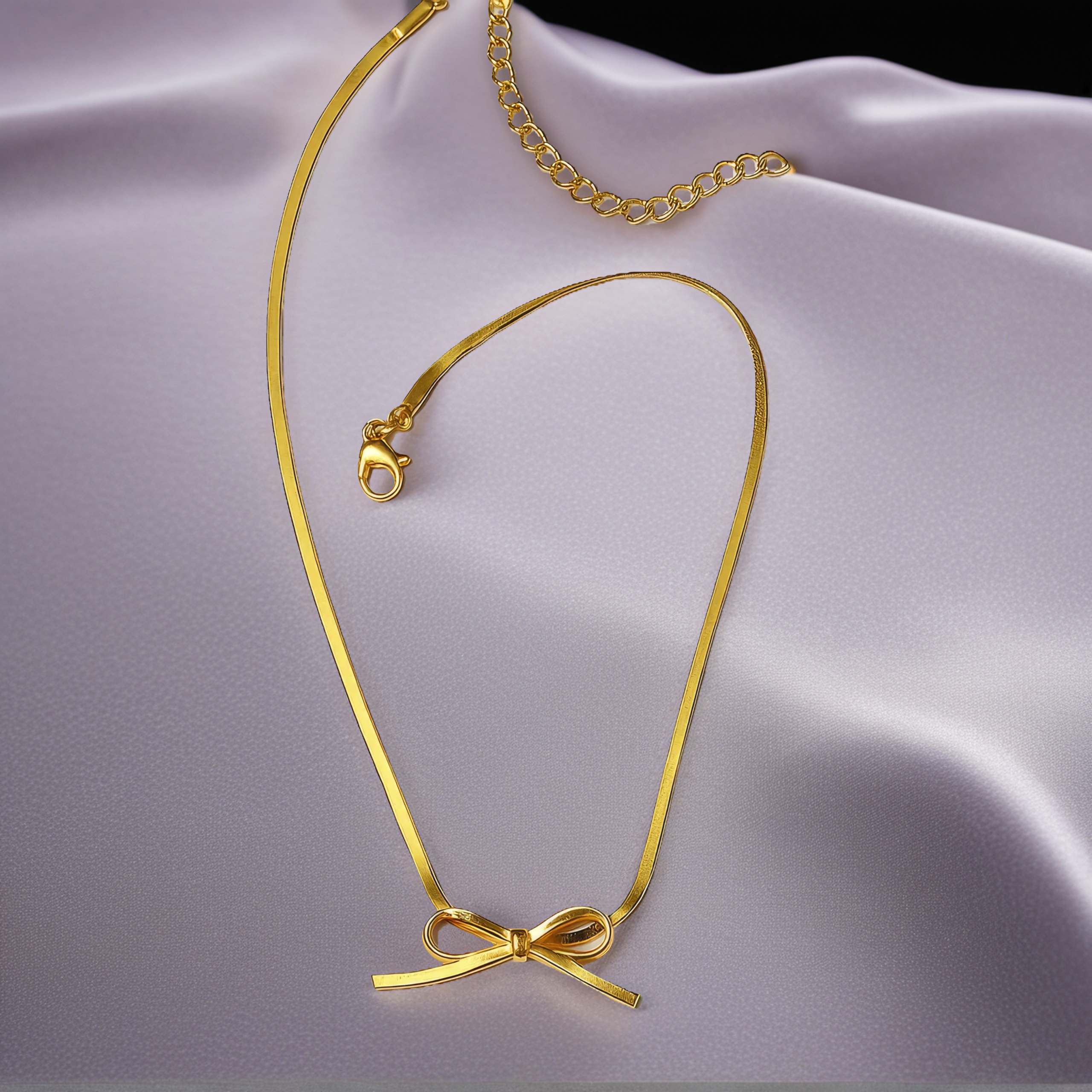 Tied with elegance—this gracefully simple necklace wraps your neckline in golden charm, like a delicate ribbon made just for you. Crafted in 18k gold-plated stainless steel, hypoallergenic, waterproof, and anti-tarnish, it adds effortless sophistication to everyday wear or special moments.