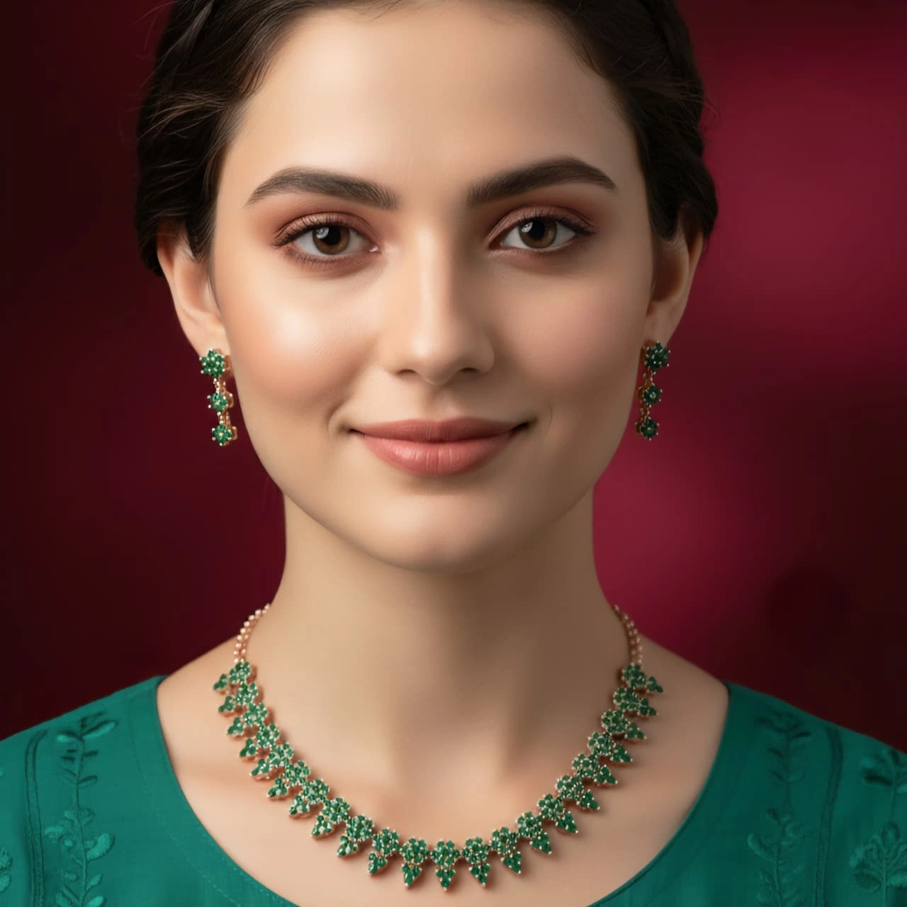Add festive radiance to your look with this Festival Necklace and Earring Set, crafted in 18k gold plating (lacquer finish) and embellished with sparkling AD stones. Made to be hypoallergenic, skin safe, and waterproof, it ensures comfort while you shine through special occasions. Ideal for traditional celebrations and office festivities, this elegant set is offered at the lowest price possible. Enjoy free delivery on prepaid orders. Limited stock—order now and celebrate in style.