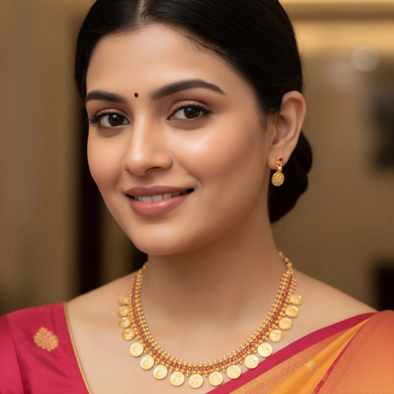 Add festive radiance to your look with this Festival Necklace and Earring Set, crafted in 18k rose gold plating (lacquer finish) and embellished with sparkling AD stones. Made to be hypoallergenic, skin safe, and waterproof, it ensures comfort while you shine through special occasions. Ideal for traditional celebrations and office Onam festivities, this elegant set is offered at the lowest price possible. Enjoy free delivery on prepaid orders. Limited stock—order now and celebrate in style.
